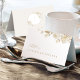 Estes cartões de nome de casamento modernos e elegantes apresentam um design floral botânico dourado falso e escrita romântica e fonte serifada sofisticada, com design de monograma do casal no verso. Ótimo para casamento romântico no jardim e casamento moderno e luxuoso.