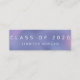 Um cartão de graduação moderno com frente mbre e metalica em diferentes cores para você escolher com a "classe de" tipografia moderna e um ano junto com seu nome no meio. No verso mantenha suas informações pessoais em fontes elegantes sans serif