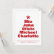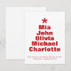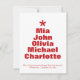 cartão de Natal personalizado com nomes da família vermelho e branco da árvore de Natal