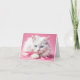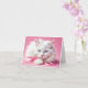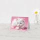 Bonito gato branco com olhos azuis e fitas cor-de-rosa para a placa de nota do vazio.