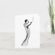 A moça esbelta e sofisticada no esboço de aquarela nesta carta veste um vestido formal de prata chic acessado com luvas pretas cotovelas e uma combinação de chapéu preto/roubada enquanto ela fuma de um longo maço de cigarro, lembrando as festas da Era Jazz. Da minha imagem original criada digitalmente.
