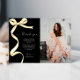 Expresse sua gratidão com estilo com este elegante cartão de agradecimento preto e dourado, apresentando um luxuoso laço dourado e espaço para uma foto pessoal. Perfeito para aniversários, chá de noiva ou qualquer ocasião especial, este design exala sofisticação atemporal. Personalize com sua mensagem sincera e detalhes para criar um presente memorável para seus destinatários.