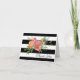 Elegante cartão de nota de agradecimento de casamento feito em um padrão ousado de listras pretas e brancas, com um lindo e colorido buquê de peônias e texto preto que diz Obrigado. Personalize o texto interno para atender às suas necessidades. Produtos de casamento correspondentes estão disponíveis.