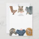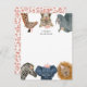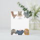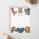Cartão de nota de papelaria infantil fofo com ilustração desenhada à mão de animais de safari (girafa, leopardo, rinoceronte, leão, elefante e zebra) com coroa de flores rosa, chapéus de festa e tiaras.