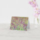 Uma obra de arte digital original que consiste na minha fotografia de flores selvagens magenta profundas num campo, processada num estilo ligeiramente impressionista. Esta é uma placa de anotação dobrada de 4" x 5,6". Este cartão é vazio de dentro para que você possa escrever cartas e notas pessoais. Ainda é bom receber cartões reais e dizer a alguém que está a pensar neles.