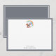 Este cartão de notas personalizado para o nome do bebê apresenta uma ilustração em aquarela de um adorável elefante bebê em pé sob um arco-íris suave. O design é emoldurado por uma fina borda na cor Cinza Ardósia, uma tonalidade suave e calma que dá ao cartão um visual moderno e sofisticado. A parte de trás do cartão é totalmente coberta pela mesma tonalidade Cinza Ardósia, criando um visual coeso e atemporal.