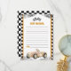 Cartão de Nota de Cápsula de Tempo de Festa de Aniversário de Carro de Corrida