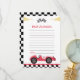 Cartão de Nota de Cápsula do Tempo de Festa de Aniversário de Carro de Corrida