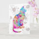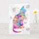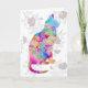 Arte original com minha fotografia original de um padrão floral, estilizada com uma técnica de aquarela abstrato e formada em uma silhueta de gato. Ele é colocado em um padrão floral vintage em cinzas para uma aparência artística. O cartão é vazio de dentro para que você possa escrever suas cartas e notas pessoais. Um cartão de excelente para o amante ou veterinário do gato.