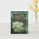 Cartão de encorajamento para enfrentar tempos difíceis. Fundo verde e azul-claro com flores brancas. O texto da frente diz: "Quando Deus te leva até a borda do penhasco..." Dentro é vazio para sua personalização.