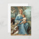 O cartão de nota da Madonna Azul Francesa apresenta uma imagem de um belo cartão sagrado francês antigo impresso no final do século XIX. Jesus e a Mãe Abençoada estão cercados por pombas brancas e uma paisagem arborizada nebulosa.