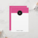 Esta carta elegante apresenta uma borda rosa escura, com o seu monograma num círculo negro central, e o seu nome no fundo.