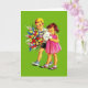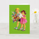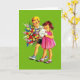 Placa de Nota Retroativa/Vintage. Duas crianças adoráveis com um buquê enorme de flores e um cartão de saudação para alguém especial! Perfeito para qualquer ocasião! Dia de as mães, aniversário, boa sorte, melhores desejos, Parabéns etc. dentro de vazio para sua mensagem especial.