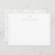 Um charmoso cartão de nota de berçário adornada com um delicado padrão de flores silvestres de cottagecore, em rosa mole e azul no verso. A frente apresenta um layout minimalista com ilustração de arco rosa e roteiro elegante, perfeito para mensagens sentidas ou notas especiais.
