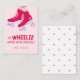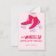 Estou WHEELIE feliz que somos amigos! Um cartão personalizado de Dia dos Namorados para a sala de aula com patins rosa quente, rodas roxas, uma saudação escrita à mão e um apoio de coração feliz.