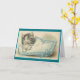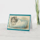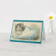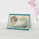 Cartão de nota do Victorian/vintage. Gatinho preto e branco adorável em um travesseiro azul e branco! Aperfeiçoe todo o cartão de nota da ocasião para amantes do gato!