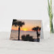 Um pôr do sol ouro na Flórida filtra através das silhuetas de palmeiras balançando. O céu brilha com tons vibrantes de laranja, rosa, violeta e roxo, se misturando perfeitamente ao crepúsculo. Abaixo, o calmo oceano espelha as ferozes cores, criando uma cena tropical pacífica que captura o calor e a beleza de uma noite costeira.