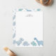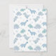 Cartão de nota de papelaria infantil com ilustração desenhada à mão de dinossauros azuis pastéis.