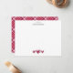 A frente é branca com um nome personalizado em preto colocado no topo do cartão. Na parte inferior estão três corações em estilo de renda em um tom profundo de Burgundy. O visual é simples, moderno e aconchegante. A parte de trás apresenta um padrão xadrez retrô do Dia dos Namorados em Burgundy, dando ao cartão um sentimento clássico e aconchegante. Ótimo para notas curtas, mensagens diárias ou presente pessoal.