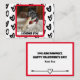 Personalize este cartão de Dia dos Namorados para cachorro com uma foto do seu próprio cachorro! A frente do cartão apresenta uma foto personalizável por trás de uma moldura vermelha simples e uma faixa que diz "Eu te amo demais" (I Chews You). O fundo de corações pretos e brancos facilita a combinação com qualquer foto que você escolher. Se você não gostar das palavras na frente, você pode mudá-las ao personalizar!
