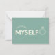 Quem precisa de um parceiro quando você é o melhor partido por perto? Este design ousado e empoderador apresenta um anel de diamante deslumbrante com as palavras "Eu Preferiria Me Casar Comigo Mesmo", tornando-o o cartão perfeito para celebrar o amor próprio, a independência e a escolha de se colocar em primeiro lugar. Seja para uma risada no anti-Dia dos Namorados ou um lembrete de autoestima, este cartão de nota é a declaração definitiva de confiança!