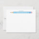 Cartão infantil 'Uma Nota De' plano com um lápis desenhado à mão. Dentro do lápis é onde o cartão pode ser personalizado. As cores são tons de azul com um toque de rosa para a borracha do lápis. Este cartão é ideal como um cartão de agradecimento ou um convite para a minha festa ou para escrever um simples olá. Estes cartões personalizados fofos ajudarão a incentivar seu pequeno com suas habilidades de escrita à mão.