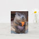 Baby Grohog Maude faz uma pausa de sua deliciosa cenoura para sorrir para a câmera. Um cartão de nota para iluminar o dia de qualquer um. dentro vazio. Foto da revista Rodent Reader Quarterly. www.rodentreader.com