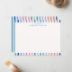 Um cartão de nota moderno com uma borda listrada colorida e realces azuis arrojados no verso. Perfeito para estudantes, crianças ou adultos, este cartão versátil funciona para notas de agradecimento, material escolar ou correspondência diária. Um design de placa plana divertida, mas sofisticada, para iluminar qualquer mensagem.