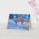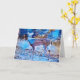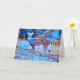 Trabalho de arte fotográfico original com veado posando fora de uma cidade ao estilo abstrato. Estipulado com tons azuis de gelo e dado um efeito de queda de neve para uma aparência artística. O cartão é vazio de dentro para que você possa escrever suas cartas e notas pessoais.