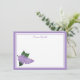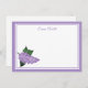 A placa de nota plana de nome personalizado é mostrada em branco, com uma trilha dupla de borda roxa e um adorável impressão de flores lilás roxas. Personalize este cartão e altere o nome para o seu.