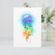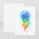 Água-viva grande, iridescente, desenhada artisticamente, brilhante, com longos tentáculos em branco, pintada sobre fundo de aquarela multicolorido. Água-viva arco-íris.