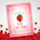 Um cartão do Dia dos Namorados para sala de aula com o texto: "Você é um amigo muito especial". O design é acentuado com um gráfico fofo de um morango e uma borda ondulada.