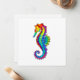 Articulação artificial, brilhante, arco-íris, cavalo de mar poligonal sobre fundo branco. Tatuagem brilhante.