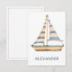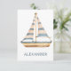 Este cartão postal fofo apresenta um belo barco à vela em aquarela com faixas azuis e creme. Personalize com sua escolha de nome ou texto especial.