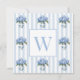 Cartão De Notas Blue and White Hydrangeas on Stripes Monogram