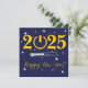 Blue square greeting card Happy new year written in yellow in English with many stars - editable text and background