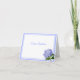 Este cartão de nota dobrado é mostrado em branco, com um pequeno trim azul de borda dupla e um adorável impressão de flor azul de hydrangea. Personalize este cartão e altere o nome do exemplo para o seu. Imagem do stock