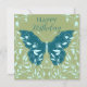 Mande desejos de aniversário calorosos com esta elegante design de borboleta. Apresentando uma borboleta teal em greve, acentuada com delicadas vinhas florais aqua em um fundo verde macio, esta trabalho de arte inspirada na natureza traz beleza e sofisticação a qualquer celebração. Perfeito para amigos, família, colegas de trabalho, ou qualquer um que ama borboletas e flores, esta saudação de aniversário de na moda combina charme cômico com elegância moderna.