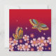 Cartão De Notas Borboletas Japonesas No Meio De Sakura Brilha Verm