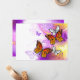 Cartão De Notas Borboletas Monarcas em Fundo Roxo