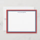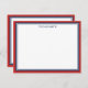 Cartões de nota personalizados elegantes em branco com bordas em vermelho e marinho em azul. Adicione seu nome em azul escuro!