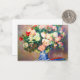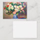 Cartão com o Buquê de pintura a óleo de Chrysanthemum de Pierre-Auguste Renoir e um ventilador japonês (1880). Lindas flores vermelhas e brancas são exibidas em um vaso azul e branco. Um ventilador colorido fica por perto. Um presente aconchegante para colecionadores clássicos de arte floral e entusiastas de arte franceses!