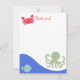 Cartão De Notas CALYPSO Sob O Mar Octopus Flat Obrigado