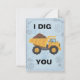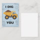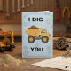 Envie uma carga de amor com este cartão de saudação "Eu Cavou Você" cheio de trocadilhos! Com uma ilustração encantadora de um caminhão basculante amarelo transbordando de terra contra um fundo de planta e engrenagens, este cartão é a maneira perfeita de mostrar a alguém especial o quanto você se importa. É uma escolha ideal para o Dia dos Namorados, um aniversário, um aniversário de casamento ou apenas porque sim. O design divertido e o trocadilho inteligente com tema de construção tornam-no um sucesso entre crianças, entusiastas da construção e qualquer pessoa com senso de humor. O interior está em branco para sua mensagem pessoal. Vem com um envelope branco correspondente.