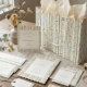 Espessura de 18 pt / Gramatura de 120 lb. Branco suave, textura delicada.