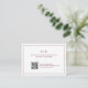 Placa Mini RSVP de Casamento Simples com um design moderno, mas elegante, com seu monograma de duas letras junto com seu Código QR personalizado, cercado por uma borda fina. Todos os elementos de design estão em burgundy e podem ser alterados para qualquer cor desejada na ferramenta de edição de design. Um Cartão de Resposta de Casamento Chic e na moda que vai bem com qualquer estilo de suíte de convite para casamento.