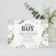 Garotos selvagens, calmos e elegantes, açari, convite para chás de fraldas de animais com girafa, efeito ouro e folhas verdes. Perfeito para convites para bebês