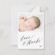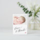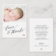 Chá de fraldas na moda minimalista elegante, script de caligrafia manuscrito personalizado pequeno obrigado a anotar modelo com sua foto, texto personalizado e assinatura em ambos os lados.