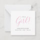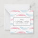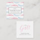 VG Invita gênero revela pouco obrigado que seu cartão de anúncio do bebê apresenta uma carregadora de penas de cor d'água do meu trabalho de arte de cor d'água original em tons de rosa e azul com espaço para adicionar seu nome ou saudação especial em um design de miniplaca exclusivo. As palavras "é uma menina" adoram a parte de trás do seu cartão com um espaço para o nome, o dom e o peso da sua filha. Uma escolha moderna, porém encantadora, para chás de fraldas de vassoura ou uma festa temática selvagem. Para mais informações, visite www.zazzle.com/vginvites