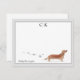 Cartão De Notas Cinza Brown Dachshund Borda Monograma Seu Nome